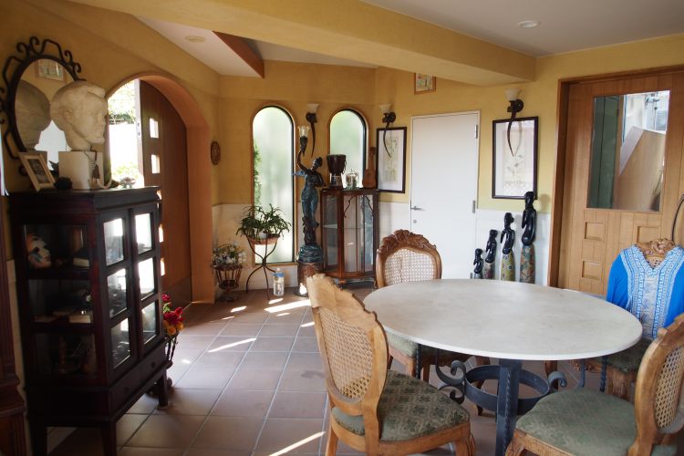 東急東横線「菊名」駅から徒歩9分、緑の多いのんびりした道沿いに物語に出てきそうなとても可愛らしい外観の建物が現れます。エントランスの扉を開けると、数々の調度品が飾られており、窓から差し込む日差しが彼らを魅力的に引き立てています。