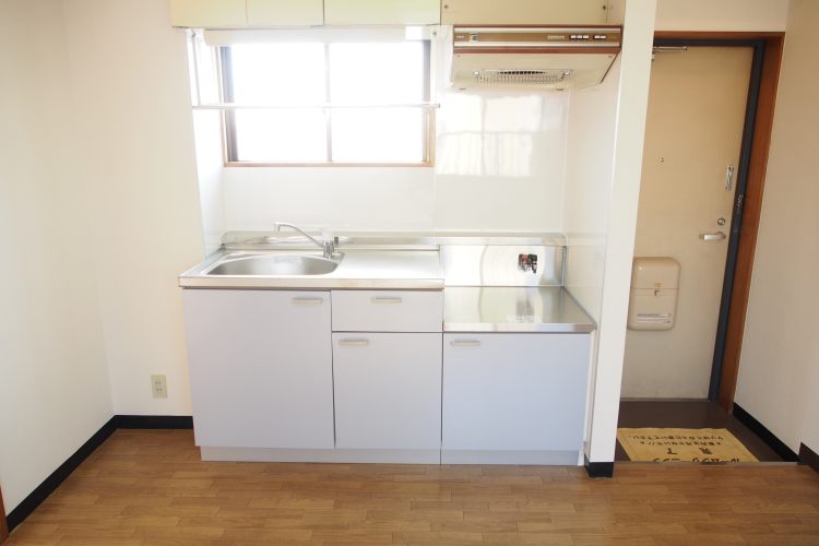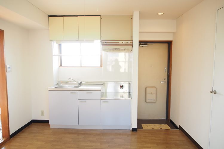 1986年築ですので、建物外観は古め、けれども、真っ赤な扉を開いたその先には、フローリングやキッチン、トイレが新設された、キレイで日当り良好な室内があらわれます。