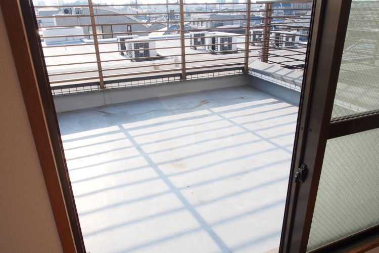 室内は1DKで広めですので、2人暮らしでも良さそうです。本居室は、建物4階に位置し、4階にはこちらのお部屋しかありません。一フロアを独り占め出来てしまい、また窓外には広々としたルーフバルコニー。周辺に高い建物はありませんので、ルーフバルコニーから見える景色は絶景です。西向きですので、毎日夕日が沈んでいく姿を臨むことが出来ます。