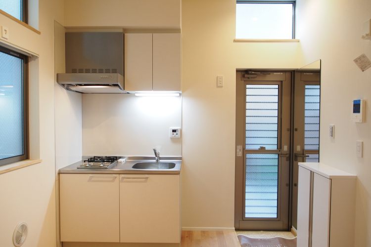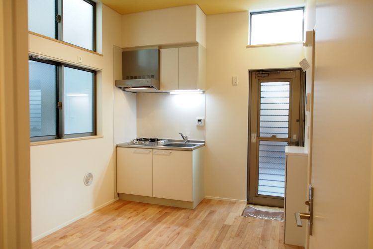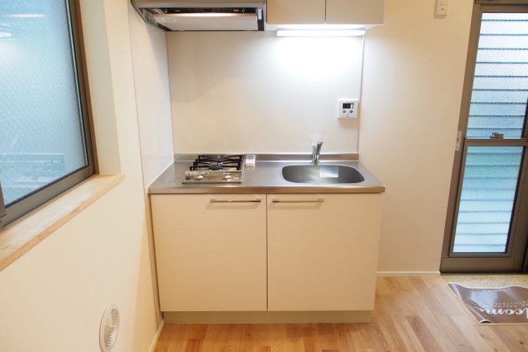 そんな場所にあるこちらのテラスハウスは、土地が狭い為室内はあまり広くありません。室内は15.43平米。それでも、バストイレ別、独立洗面台付き、2口ガスコンロの設備が設置されています。内装もオシャレ。無垢材を利用したフローリングは、室内に温かみを与えてくれています。