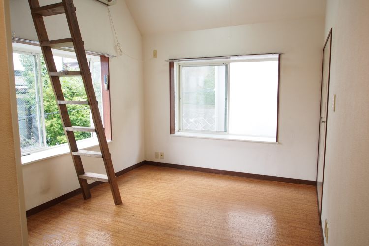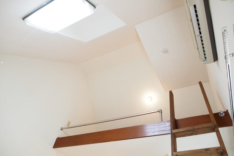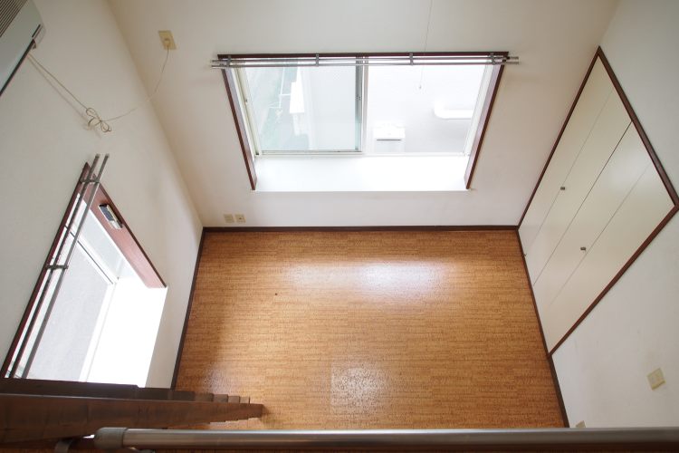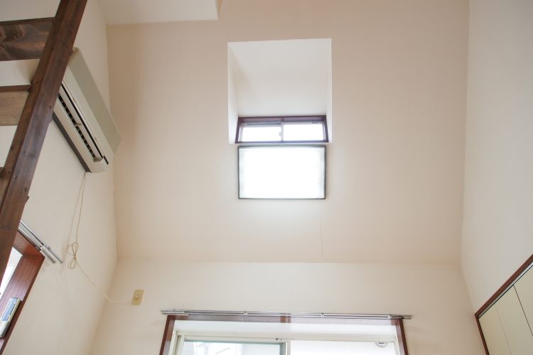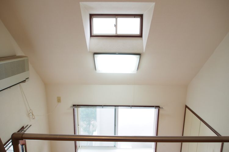 本建物は築年数が古く、木造アパートではあるものの、二面採光でロフト付き、また、天井にもトップライトが付いており、とても明るく、日当り・風通しともに良好なお部屋です。窓からの景色も眺め良し、高台にある為、二階でも見晴らしの良い景色を眺めることが出来ます。