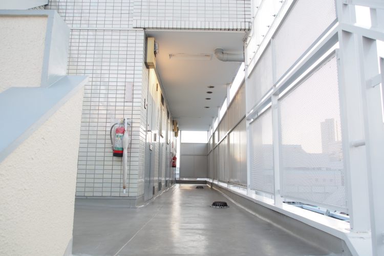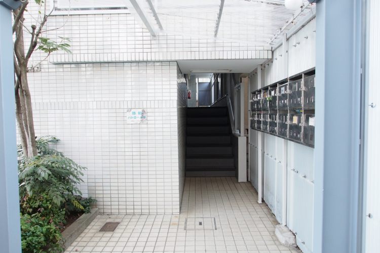 今回の建物は、建てられた当初はきっとデザイナーズ物件と謳われていたのではないでしょうか。外壁はタイル張り、共用階段に付いている屋根はちょっとおしゃれなデザイン。年数がたっても、その風格は衰えていません。