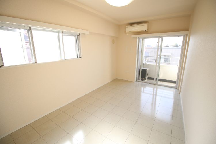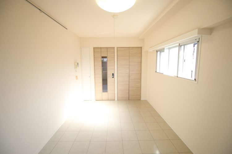室内はホワイトタイル調の床材が使用され、とてもオシャレな空間です。窓が2つ備え付けられており、南向きと西向き、周辺に高い建物がない為、日当り・風通し良好で、家から出たくなくなるようなキレイで洗練された空間です。