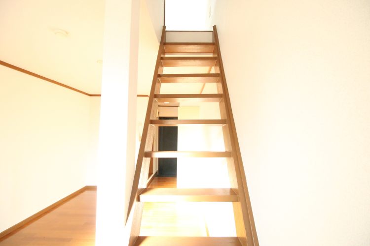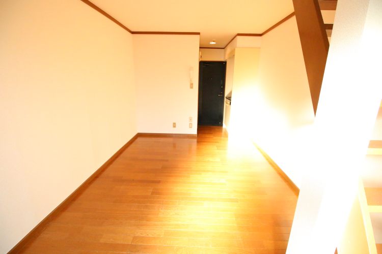 室内は南向きで日当り良好。リビングに階段が付いており、上に上がっていくと、もう1つのお部屋があらわれます。階段でしっかりと空間が区分けされていますので、リビング・寝室をそれぞれの機能に分けて使い分ける事が出来そうです。