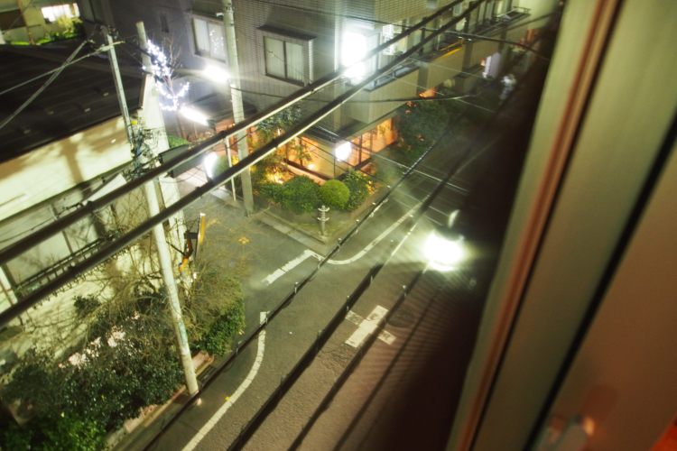 夜遅い時間帯に訪れたこちらは、エントランスがスポットライトに輝かされている分譲賃貸マンション。建物構造はもちろん鉄筋コンクリート造です。遮音性・耐久性に優れており、地震や火災等の非常時に安心することが出来ます。