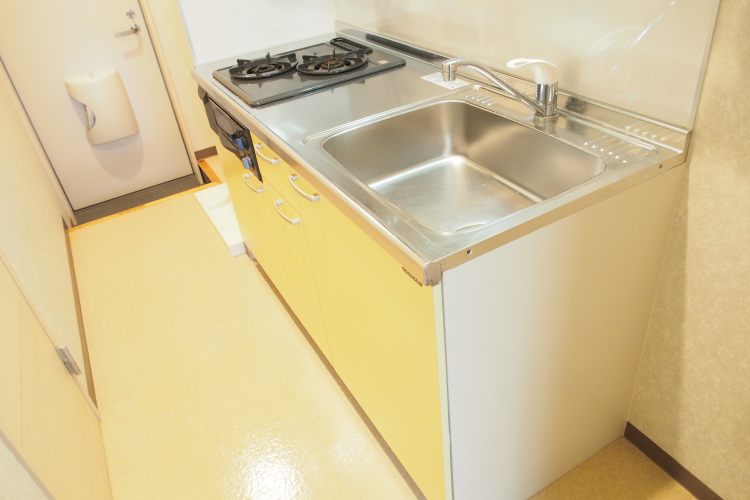 学芸大学のこの価格帯では珍しい、設備が充実したお部屋です。バストイレ別、独立洗面台付き、室内は二面採光で日当り良好。一番の嬉しいポイントは充実したキッチン設備でしょうか。2口ガスコンロ、グリル付き、たっぷり収納、洗い物用の吊り棚が用意されています。