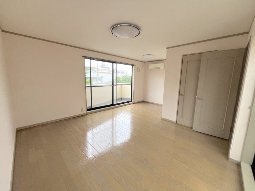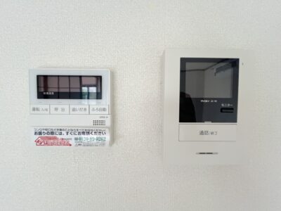 システムキッチン(3口ガスコンロ,グリル)、トイレ2ヶ所、エアコン2台、照明、クローゼット、ウォークインクローゼット、シューズボックス、角部屋(4方向)、お風呂に窓有り、玄関外に収納スペース有り