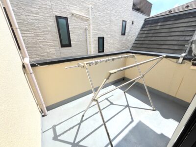 陽光に恵まれた、ゆとりあるバルコニー。洗濯物も気持ちよく乾く、毎日の家事が少し嬉しくなる空間です。