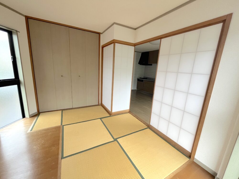 畳敷きとフローリングの個性的な和室です。飾り棚を置いたり間接照明を設置したりと、あなただけの特別な空間としてご活用ください。