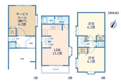 1階・2階・3階と、生活空間がフロアごとにセパレートされているのも大きな魅力。プライバシーを大切にしながら、互いの気配を感じられる理想の住まいです。
