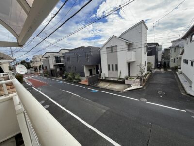 家の前には、ゆとりのある約8mの公道。視界が開けた南向きのベランダには、昼下がりのやわらかな自然光がたっぷりと差し込みます。