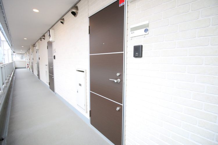 女性の方の一人暮らしでも安心出来るセキュリティ環境で、共用エントランスはオートロック、また全部屋標準SECOMが無料で設置されています。