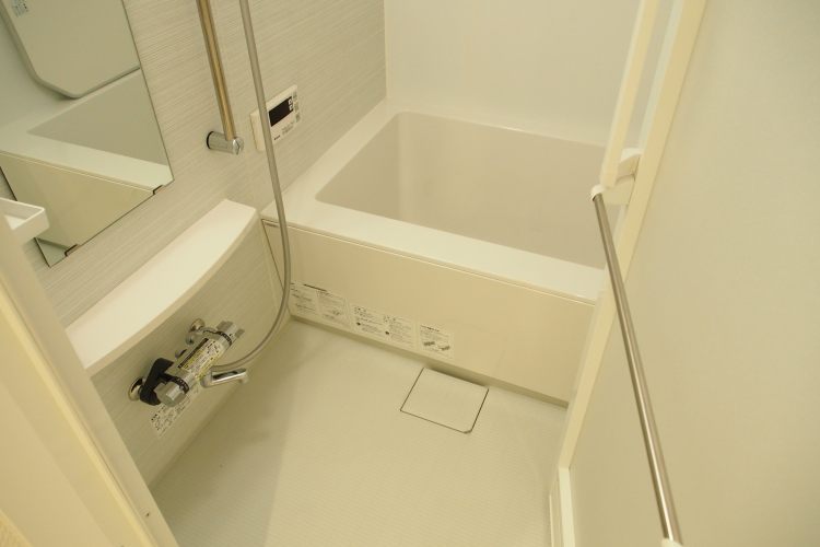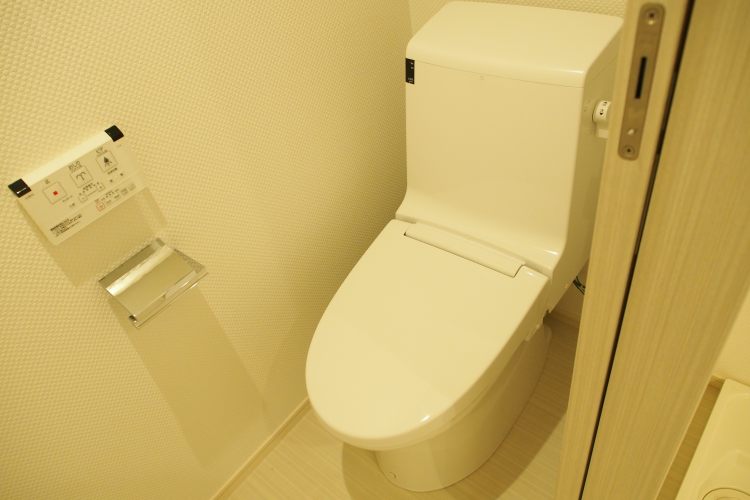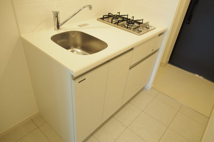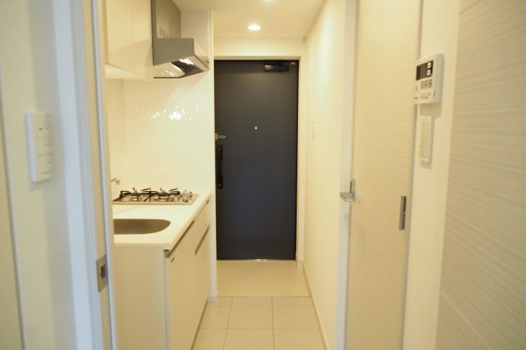 お部屋の方は、新築というだけあって、欲しいと思う設備が全て揃っています。追い焚機能・浴室乾燥機付きの浴室、ウォシュレット付きのトイレ、各所に備え付けられた収納、2口のガスコンロキッチン。まだ誰も使っていないこの空間を自由に使い倒すのにわくわくしてくるお部屋です。