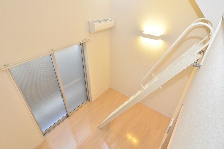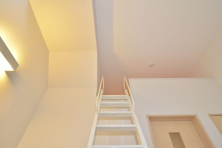 2008年築の築浅物件、共用エントランスから建物内に入ると、綺麗な青のドアに格子模様が入った共用廊下が目に入り、オシャレな印象を強めてくれます。各所に光取りの窓があり、また広めのロフト付き。使い勝手が良さそうな居心地の良いお部屋です。