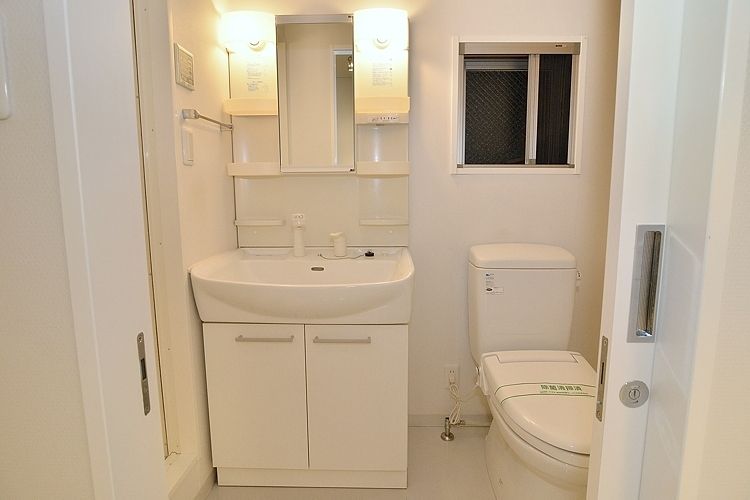 収納力のある独立洗面台が付いています。洗面ハンドシャワー付きです。 -