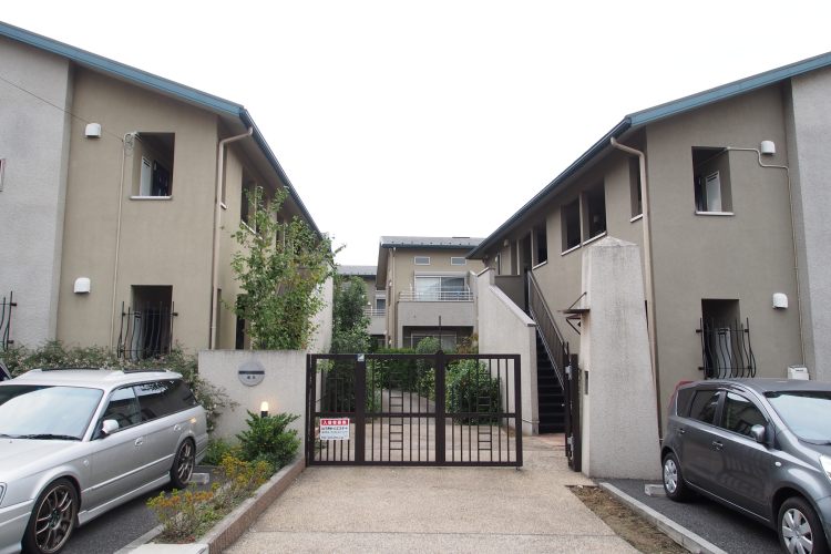 菊名駅から徒歩7分、建物内には6棟程の建物が連ね、建物全体のエントランスはお屋敷のような大きな門構えです。 -