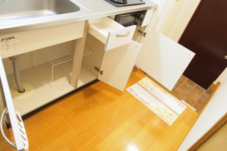 居室の設備も揃ってるのは嬉しいポイントです。2口コンロの収納力があるキッチンに、バス・トイレ別、ウォシュレット付きのトイレに、独立洗面台付きです。そして、一番嬉しいポイントとして、居室内には収納場が2カ所付いています。