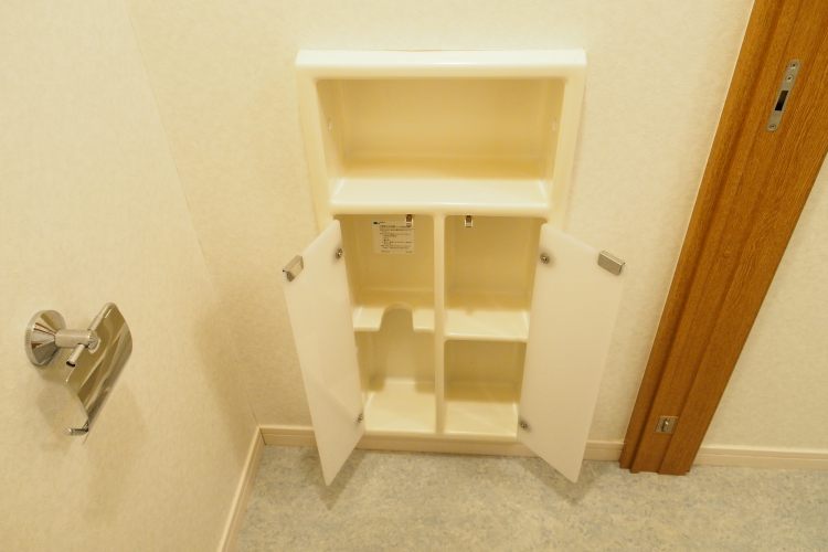 収納出来る場所が多いお部屋です。トイレにはトイレットペーパー等を収納できるスペースが設けられています。 -