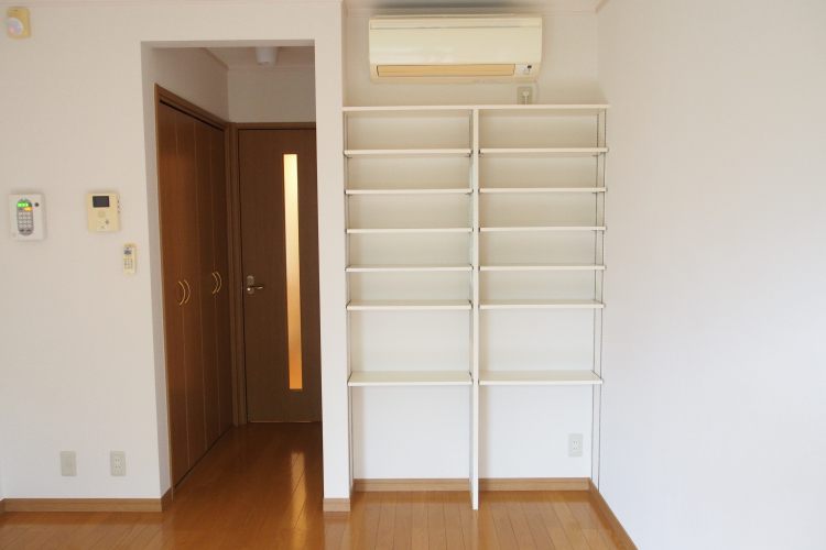 居室内には収納箇所が二つあります。一つは本棚や小物を置くのに、一つは洋服がけに利用出来そうです。 -