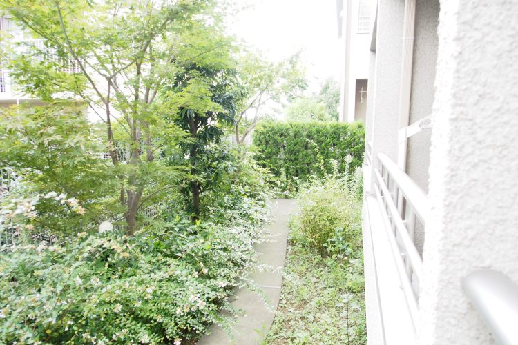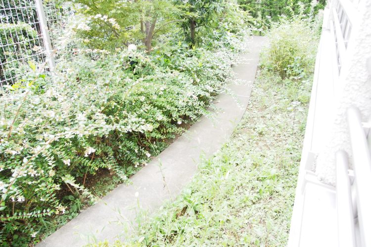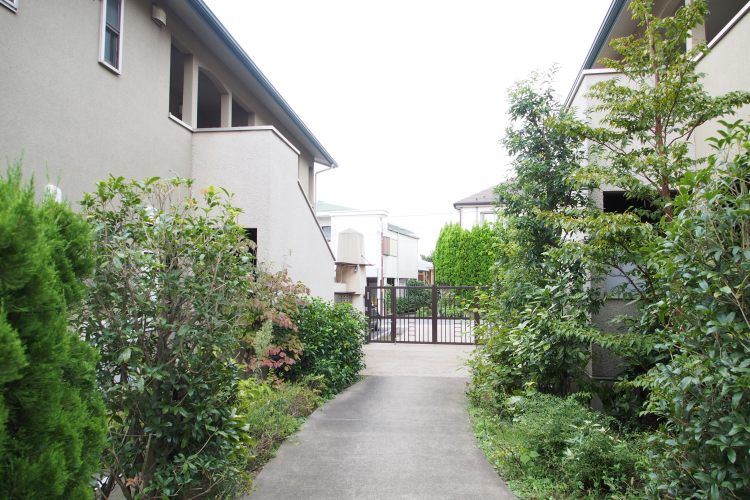 門をくぐると緑に囲まれた道が続きます。帰宅するとほっと一息付いて頂けそうです。 -