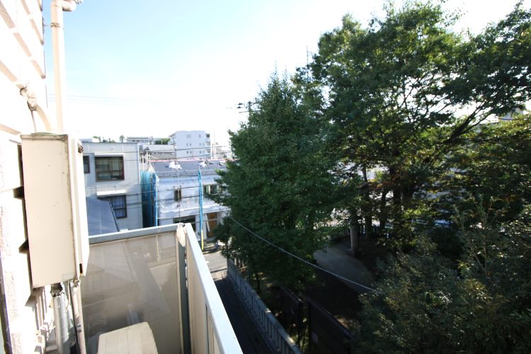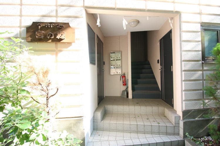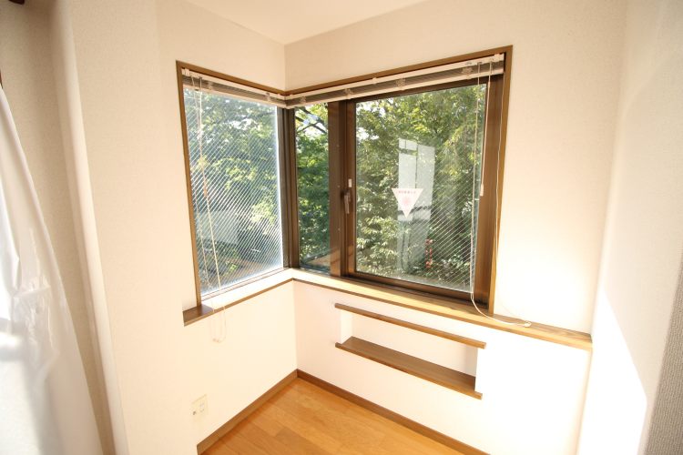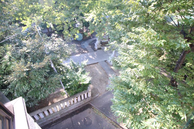 建物の後ろには杉山神社があり、神社に植えられている木々が窓外を囲ってくれています。木々の優しい色合いのお陰か、神様が守ってくださっているような、ご利益がありそうな感じがするお部屋です。