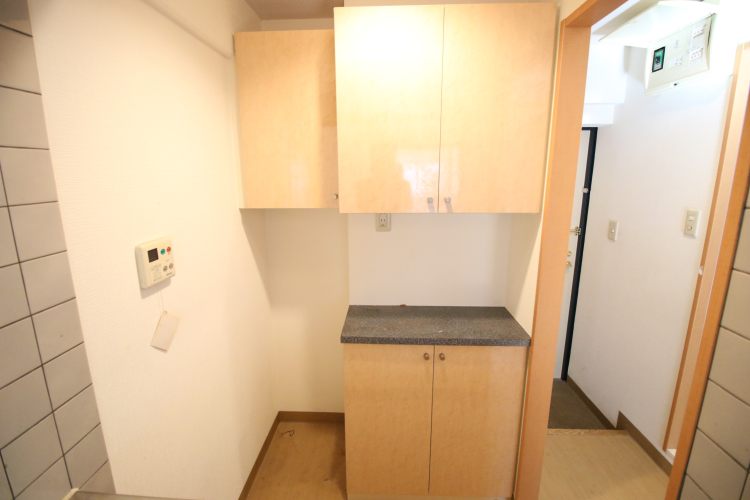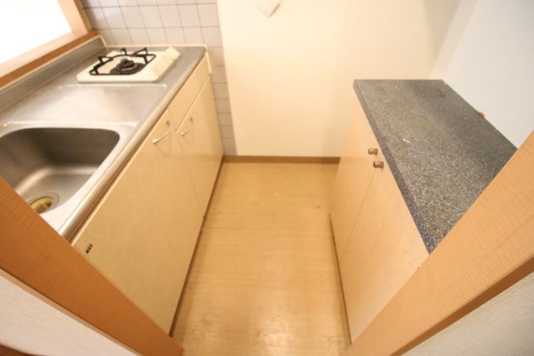 勿論ペットと一緒でなくとも、特に料理がお好きな方に気に入って頂けるかと思います。カウンターキッチンが設置されており、キッチンの後ろにはたっぷりとした収納が付いています。ガスコンロは1口であるものの、調理場もしっかりと設けられており、シンクも広め。このキッチン設備はこのお値段ではなかなか出てきません。