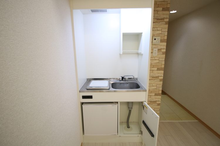 • IHコンロが1口付いています。調理場がない為、シンク上をご活用ください。
