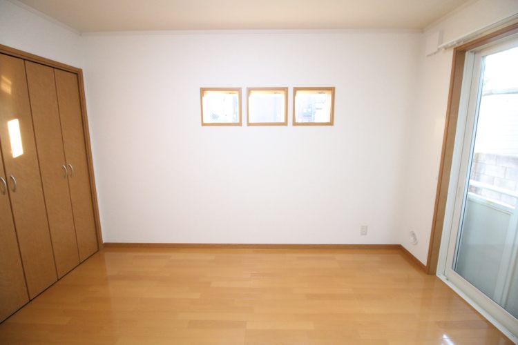 居室内は二面採光。南向きに並んだ3つの小窓がこのお部屋のアクセント。ここのお部屋に住んでいる人に会ったら、あ、この小窓が気にいったのかなと思ってしまいそうな可愛らしい小窓です。