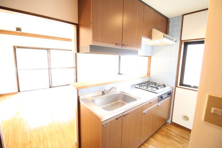 キッチンはカウンターキッチン。リビングにいる友人とおしゃべりしながらでも、一人でテレビを見ながらでも、料理の時間を楽しむことができそうです。