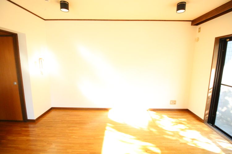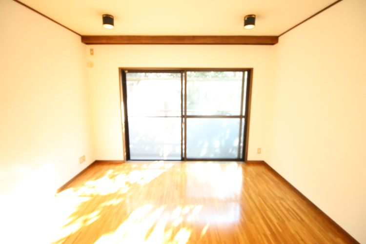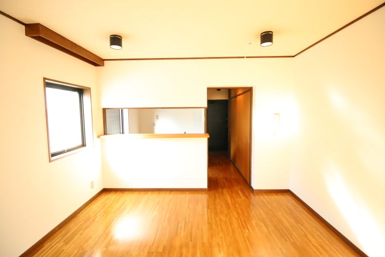リフォームされた綺麗なお部屋。新設されたおしゃれなスポットライトは、夜は静かにムードある空間をつくりあげてくれそうです。