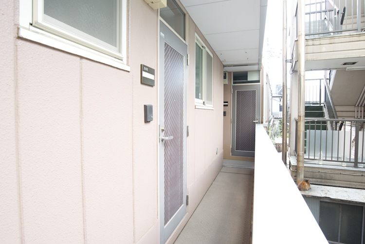 • バルコニーの幅が少し狭めです。バルコニーの正面には少し離れて建物が建っています。