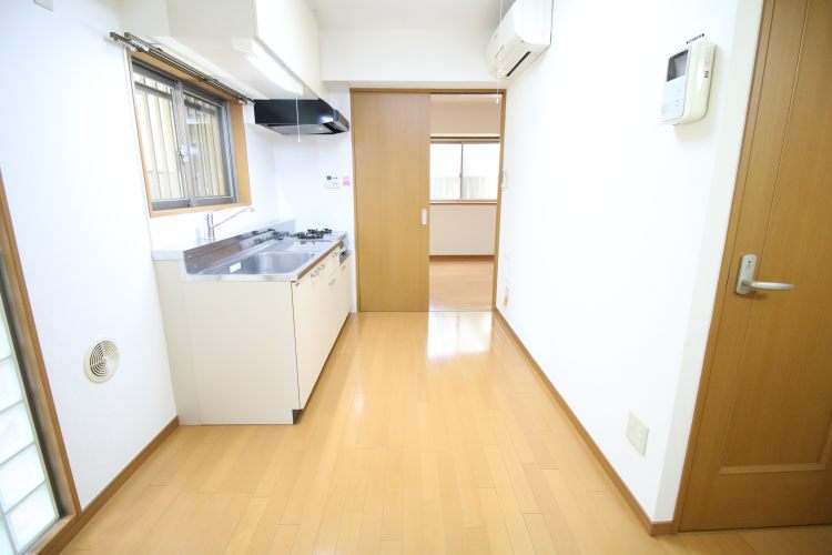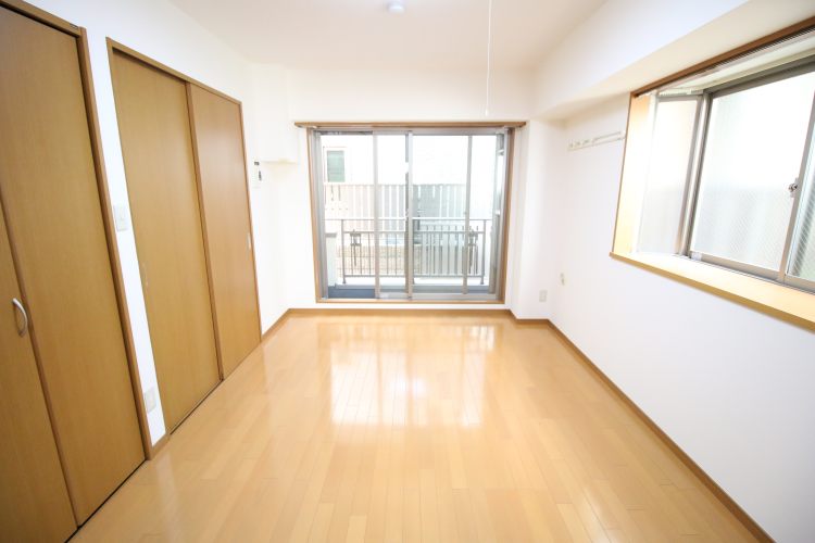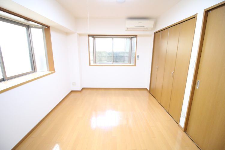 室内の間取りは広めの1DK。寝室は窓が多く、三面の壁全てに窓が付いており、日当り良好です。