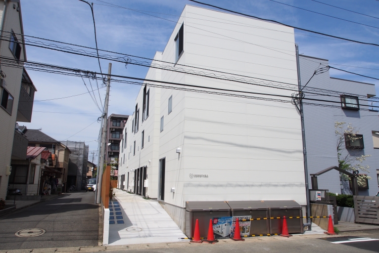 武蔵中原駅から徒歩13分、周辺は緑が多い穏やかな住宅街です。照明デザインが施された真っ白な外観は、夜訪れるととても綺麗です。 -