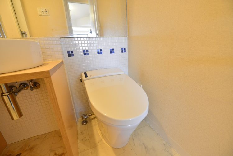 室内設備が充実しているのもオススメ出来る理由の1つです。バストイレ別、独立洗面台付き、収納たっぷりなキッチン設備、水周りは真っ白な可愛いタイルで囲われています。丸い形の独立洗面台は、個人的にはツボです・・。