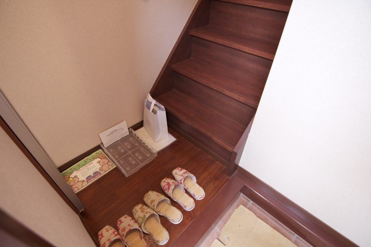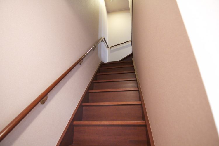入り口が1階、お部屋は2階です。お家の中に階段があるとちょっとわくわくしてきます。 -