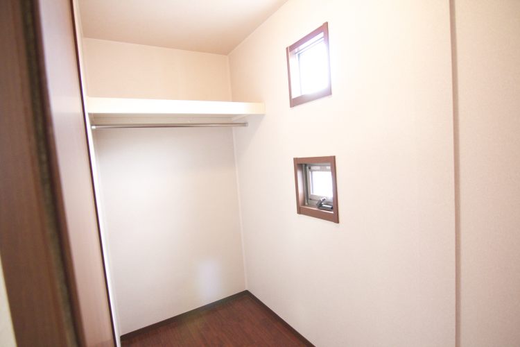 また、クローゼットは2つ用意されており、その内1つはウォークインクローゼット。2.3畳の広さがあり、小窓も付いている為、ちょっとした書斎として用いても良さそうです。