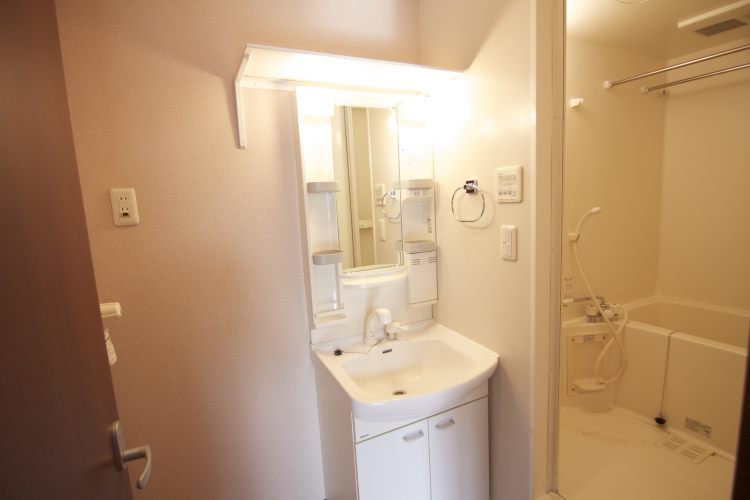 バス・トイレ別、浴室は浴室乾燥機付きです。収納力ある独立洗面台が設置されています。